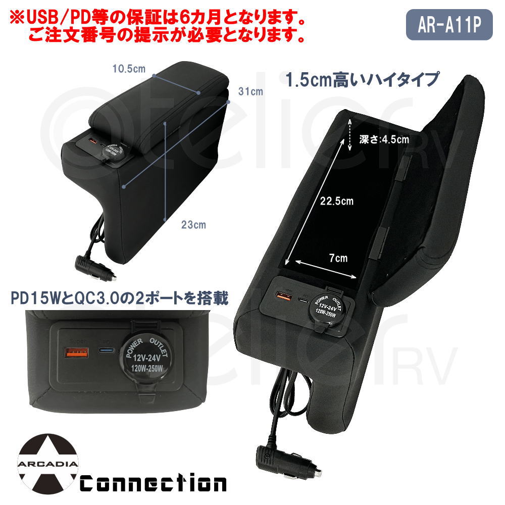 ハイエース ワイド 運転席 PD QC3.0 アームレスト 2点セット ブラック ARCADIA 200系 抗菌処理 運転席 助手席 コンソール C-101AP