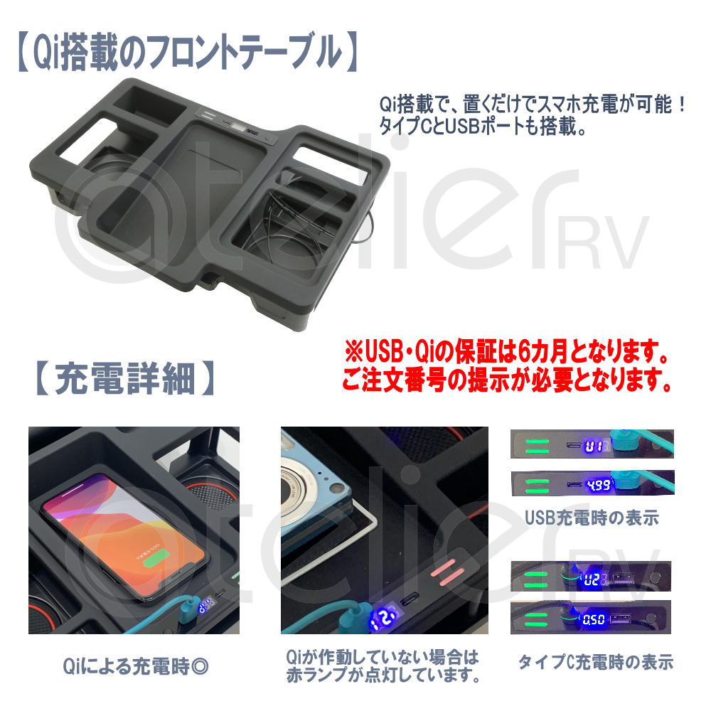 ハイエース ワイド アームレスト 3点セット Qi フロントテーブル ブラック ARCADIA 200系 抗菌処理 C-201WU