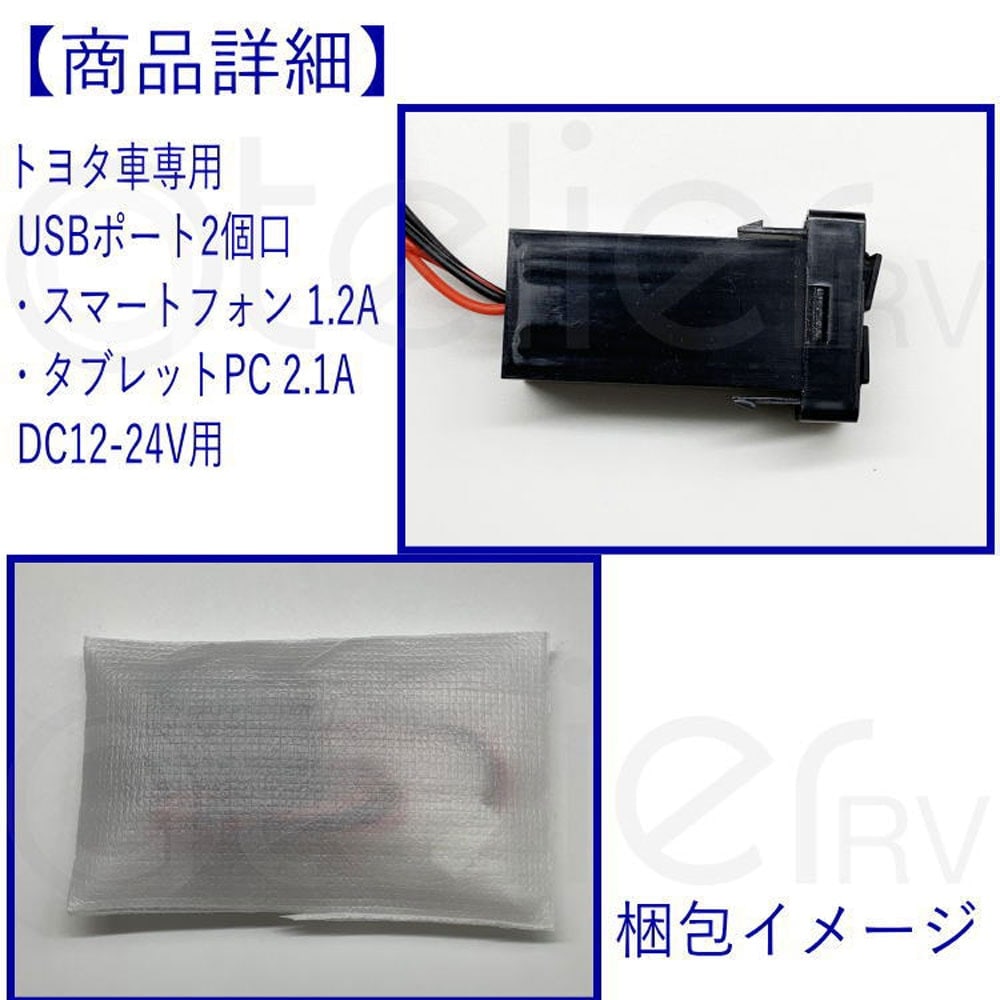 トヨタ USB ポート デュアル 充電 1.2A 2.1A 12V 24V 車内充電 電装品 スマホ スマートフォン アイフォン タブレット