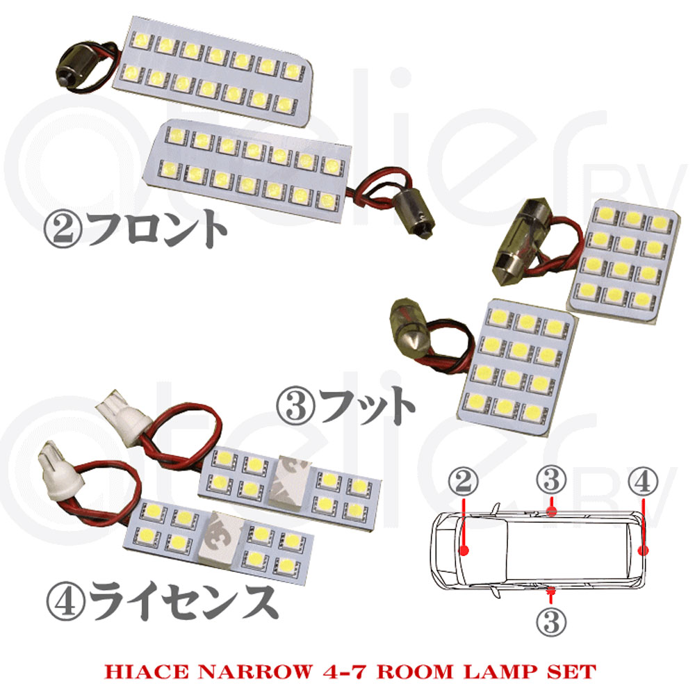 ●製品名:ハイエ ース ナロー 標準 LED ルームランプセット 4型-7型 8点セット